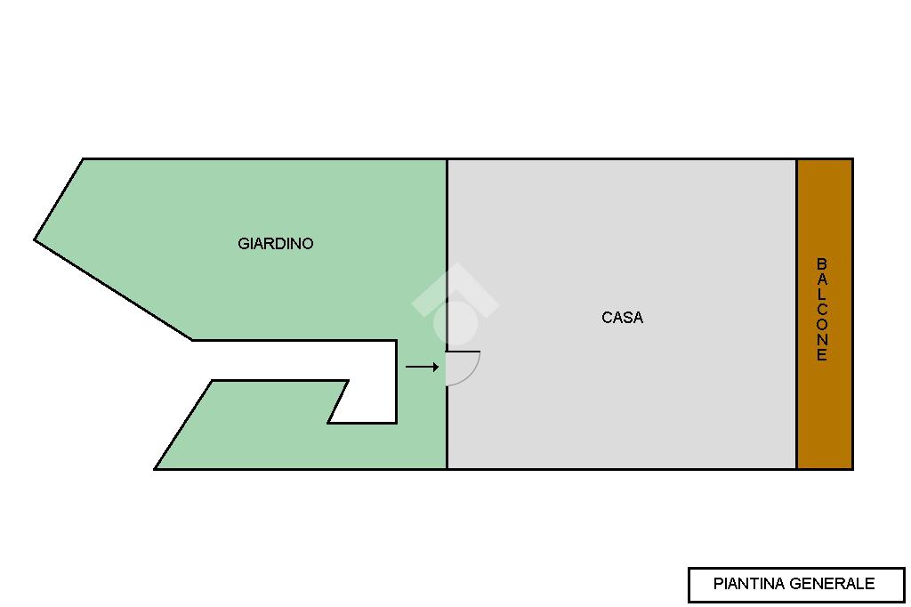 Come detto si trova al piano terra e vi si accede costeggiando il proprio giardino, in parte tenuto a prato e, nella parte più vicino alla casa, piastrellato, così da essere più sfruttabile. Questo lato della casa è particolarmente soleggiato nelle ore mattutine ed infatti è protetto dalla tenda da sole motorizzata.