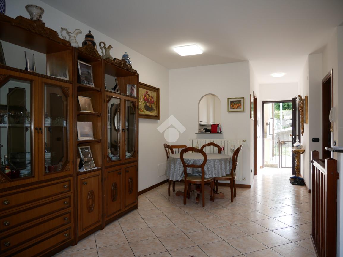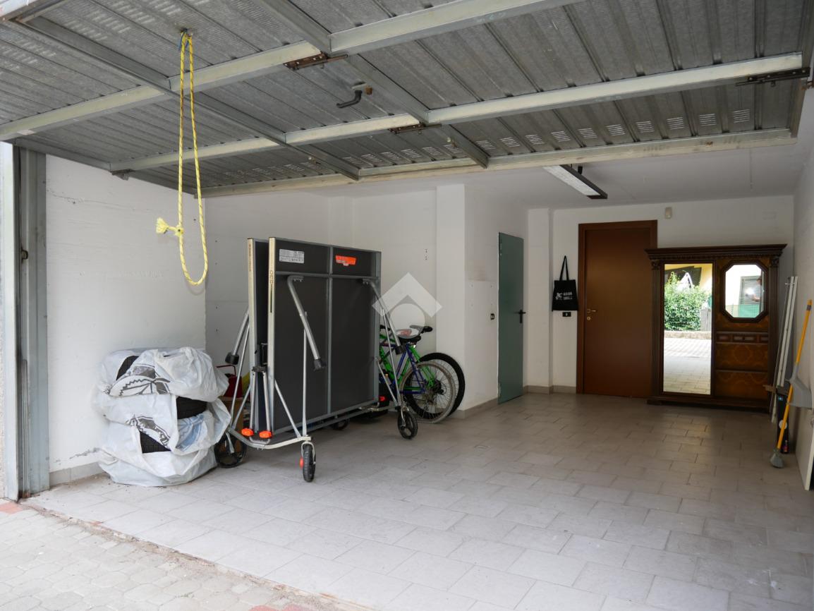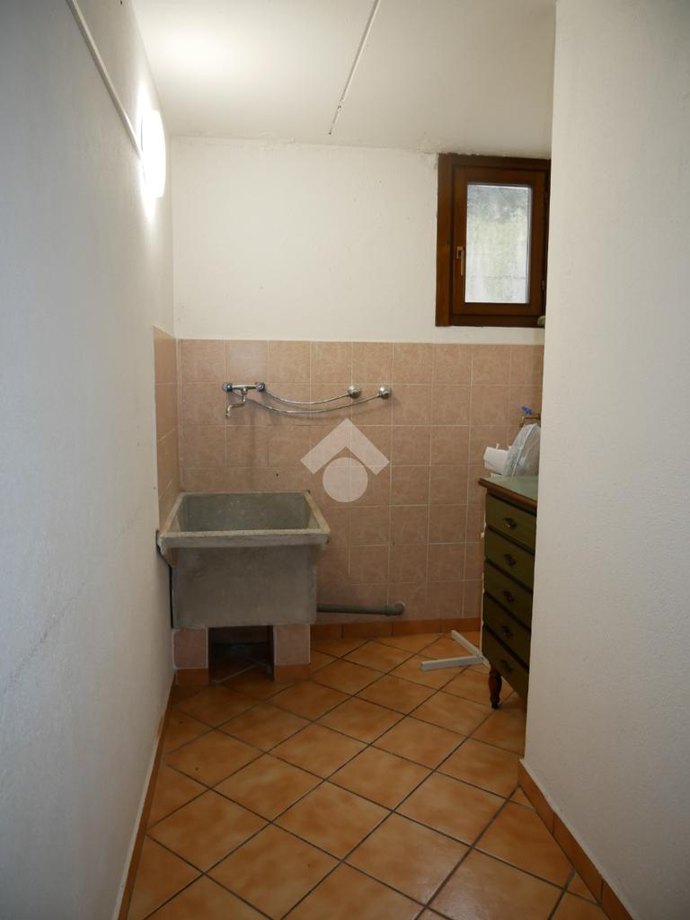 Nel soggiorno vi è una scala in legno che conduce al piano seminterrato sottostante, dove troviamo un locale cantina, riscaldato ed utilizzato come taverna, un ripostiglio arieggiato, dove sono stati posizionati gli attacchi dell’acqua e della lavatrice, ed il box, ampio circa 24 mq. Da notare che il box è collegato direttamente alla scala (li divide la porta tagliafuoco), pertanto arrivando in auto si può salire in casa senza dover uscire all'aperto.