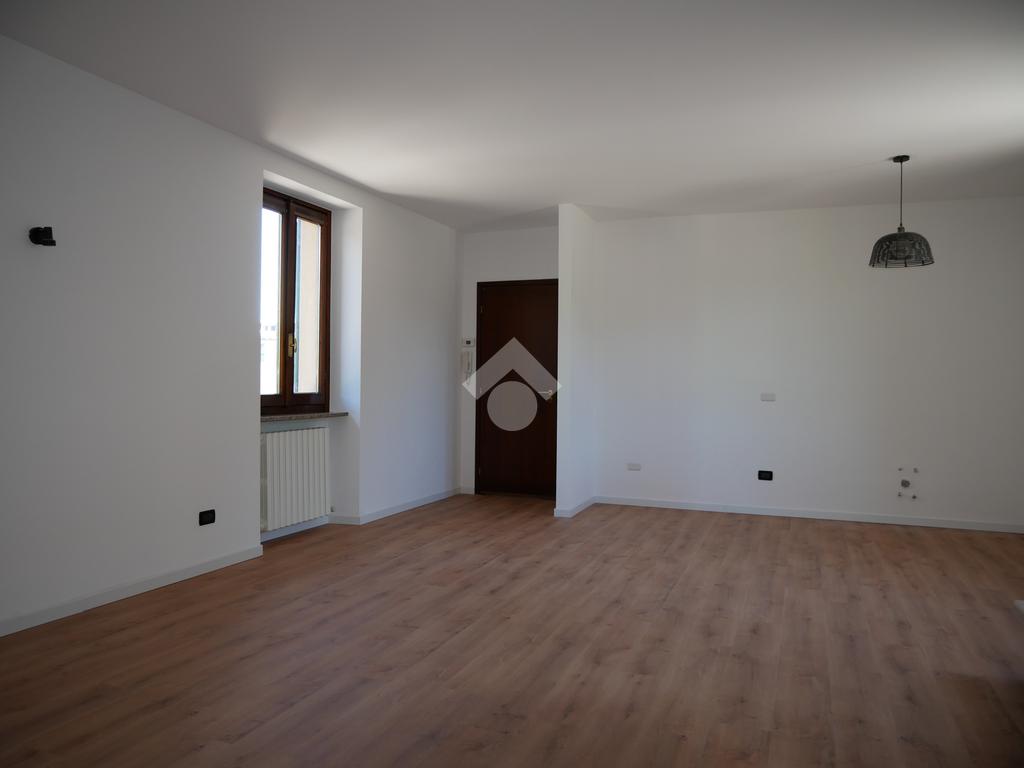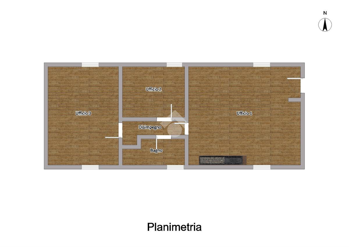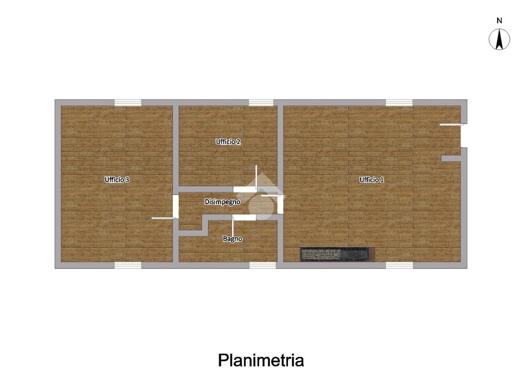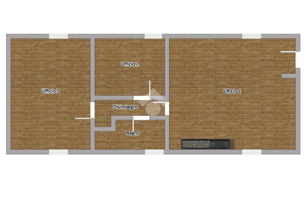 La pavimentazione dell’intero ufficio, appena posata, da uniformità in quanto è identica per tutti i locali: un resistente spc in finto legno dal colore neutro.